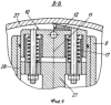 Конические ролики 21 закреплены на ползунах 27, радиально перемещающихся в направляющих втулках 28, установленных в планшайбе 9. Пружины возврата 22 смонтированы в отверстиях ползунов 27, взаимодействующих с режущими головками.
