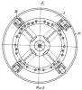 Привод вращения планшайбы 9 содержит гидромотор 29, закрепленный на левой внешней части 1 корпуса, зубчатую шестерню 30 и зубчатое колесо 31, смонтированное на планшайбе 9.