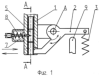 Устройство состоит из корпуса 1, прижимного рычага 2, имеющего возможность вращаться вокруг оси А и подпружиненного пружиной 3. Валок 4 вращает втулку 5 от независимого привода 6 в момент поиска технологического элемента иглой 7, подпружиненной пружиной 8. Упор 9 служит для ограничения положения рычага 2.