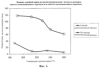 На фиг.2 показан график среднего размера частиц сшитого катионоактивного крахмала, сваренного при различных температурах струйной варки.