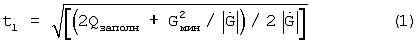 Способ проиллюстрирован графиком, представленным на фиг.2. Заштрихованная площадь на графике изменения расхода топлива (Gт) по времени (t) пропорциональна объему топлива, который проходит через дозатор 8 в процессе заполнения коллектора 3. Данный объем должен быть равен объему (QЗАПОЛН) заполняемого коллектора 3, который определяется на этапе его изготовления. Минимальный расход топлива, на который должен быть выведен дозатор в конце процесса заполнения коллектора – GМИН, определяется на этапе доводки форсажной камеры, исходя из условия обеспечения устойчивого горения топлива при минимально возможном перепаде на форсунках. Заданная (максимальная контролируемая) скорость перемещения дозатора определяется только конструкцией форсажного регулятора. Таким образом, задавая указанные выше параметры, из решения геометрической задачи фиг.2 можно определить время (t1) перемещения дозатора 5 в сторону увеличения расхода топлива: