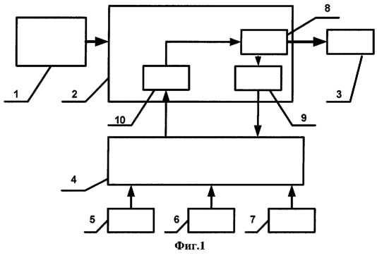 Система регулирования содержит форсажный насос 1, форсажный регулятор 2, коллектор 3 форсажной камеры и электронный регулятор 4, связанный с датчиками внутри двигательных и режимных параметров двигателя: датчиком 5 температуры воздуха (T 1) на входе в двигатель, датчиком 6 давления (Р2) воздуха за компрессором, датчиком 7 положения рычага управления двигателем ( руд). Форсажный регулятор 2 содержит дозатор 8, положение которого измеряет датчик 9 положения, и исполнительный механизм 10 управления дозатором 8. Датчик 9 положения подключен к входу регулятора 4, который по сигналу датчика 9 вычисляет величину расхода топлива. Управляющий выход регулятора 4 подключен к исполнительному механизму 10.