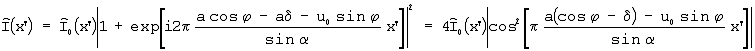 Фотопластинка 3 регистрирует спеклограмму, т.е. интенсивность волны . После деформации исследуемая поверхность испускает волну exp(i2 u0x)f(x+а), где , , , , A – перемещение исследуемого участка вдоль оси x, – угол наклона участка по отношении к оси x. На ту же фотопластинку регистрируется новый сигнал .