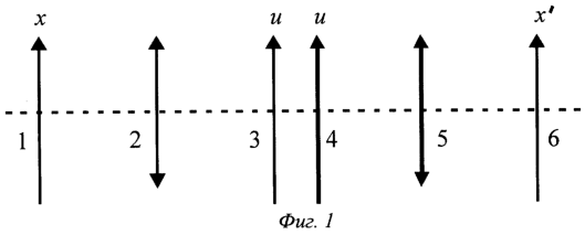 Проявленная фотопластинка 4 является двухэкспозиционной спеклограммой и содержит распределение интенсивности в виде I(u)=I0(u)+I0(u+acos -u0sin -а ).