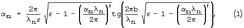 Таким образом, по значениям измеренных коэффициентов затухания поля поверхностной медленной E-волны определяют диэлектрическую проницаемость (ее действительную часть) и толщину диэлектрического покрытия (ленты) на ее середине.