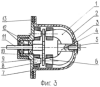 на фиг.4 – график зависимости ЭДС (е, Вольт) тахометра от числа оборотов индуктора-модулятора (n, об/мин) и частотная характеристика тахометра (f, Герц от n, об/мин). Расчетная характеристика 1 показывает зависимость ЭДС тахометра от числа оборотов индуктора-модулятора. Для сравнения приведена кривая 2, полученная экспериментальным путем. Кривая 3 представляет частотную характеристику данного тахометра.
