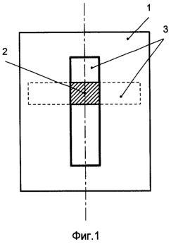 Техническая сущность заявляемого способа поясняется следующим образом. При изготовлении каждой пластины, как и в известном аналоге, используется стандартная технология производства чувствительных элементов датчиков ПВДФ (R.P.Reed, R.A.Graham, L.M.Moore, L.M.Lee, D.J.Fogelson, F.Bauer. The Sandia Standard for PVDF Shock Sensors. In: Shock Compression of Condensed Matter-1989, Elsevier Science Publishers B.V., 1990, pp.825-828), в которой электрическая поляризация осуществляется с помощью неудаляемых электродов, нанесенных, например, методом вакуумного напыления. Затем этим же методом наносятся на каждую пластину измерительные токовыводы в виде плоскопараллельных полосок, как и в прототипе. Но в отличие от прототипа формирование измерительных токовыводов производится путем увеличения площади электродов, использовавшихся в процессе поляризации, без удаления последних. После соединения обеих пластин поверхностями с однополярными электродами симметрично друг другу и электрического попарного соединения соответственно образовавшихся таким образом внешних и внутренних измерительных токовыводов полученная конструкция представляет собой пьезоэлектрический датчик с двумя ЧЭ. При этом электрически эти ЧЭ соединены параллельно согласно и, следовательно, функционируют как один ЧЭ удвоенной толщины.