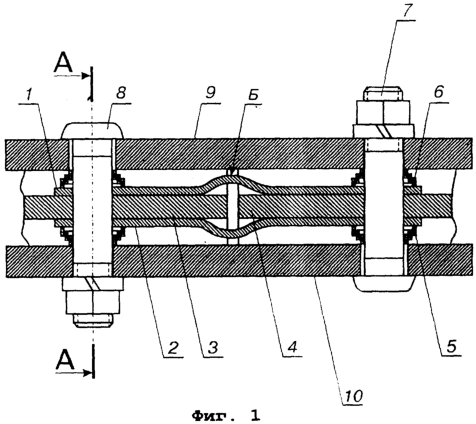 на фиг.2 – сечение токопроводящего соединителя рельсовой цепи, показанного на фиг.1, по линии А-А.