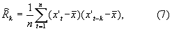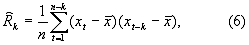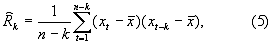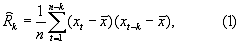 В статистике имеется несколько формул для оценки автокорреляционной функции для выборки объемом n отсчетов, где х – среднее для n отсчетов, полученное из выражения 4:
