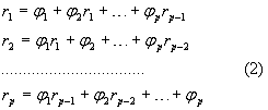 Здесь r1…rp-1 – коэффициенты нормированной автокорреляционной функции.