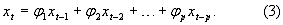 1; 2; p – значения весовых коэффициентов фильтра авторегрессии порядка р;