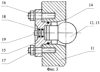 Каждая i-ая секция гидрокамеры 1 снабжена на концах одинаковыми накидными гайками 7i и 8i которые навернуты на соответствующие резьбы на концах секции 1i. Накидные гайки соседних секций скреплены друг с другом шпильками и гайками (на фиг. не показаны), чем и осуществляется стыковка друг с другом и одновременно юстировка, т.е. положение единой гидрокамеры относительно рельсового пути, секций гидрокамеры. К накидным гайкам крайних секций аналогичными шпильками и гайками крепятся фланцы 9 и 10, закрывающие гидрокамеру 1 с торцов. Герметизация стыков секций гидрокамеры друг с другом и крайних секций с фланцами 9, 10 осуществляется с помощью резиновых уплотнительных колец (на фиг. не показаны).