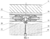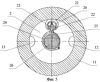 Держатель антенны устройства протяжки и закрепления калибруемой антенны выполнен в виде множества башмаков 22, перемещающихся внутри направляющей 20. Из каждого башмака 22 вниз выходит ось 23, которая выходит из направляющей 20 через разрез внизу. К каждой оси 23 прикреплен свой держатель 24, представляющий собой пруток, согнутый по дуге окружности с пружиной 25. Калибруемая антенна 26 опирается на изогнутые прутки 24 и фиксируется пружинами 25. Размеры этих элементов устройства протяжки таковы, что центр дуги, по которой изогнут пруток держателя 24, приходится на центр гидрокамеры 1, где гидроакустическое поле моделируется наилучшим образом. В каждый башмак 22 с обоих его концов входят жесткие трубки 27, крепящиеся друг к другу и к башмаку П-образной скобой 28. Благодаря жесткости трубок 27 все держатели антенны (башмаки 22) имеют возможность перемещаться внутри направляющей при прикладывании усилия к крайней трубке. Длину трубок 27, а следовательно, и количество башмаков определяет жесткость калибруемой антенны 26 таким образом, чтобы на расстоянии между держателями 24, равном длине трубки 27, антенна 26 не имела вертикального прогиба.