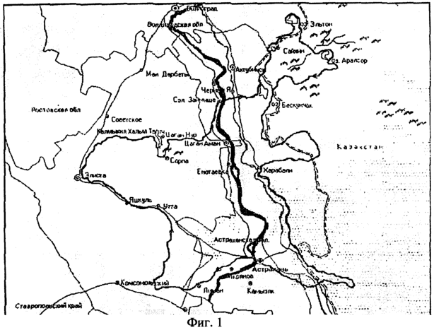 На фиг.1 представлен маршрут экспедиции по сбору семян аридных кормовых растений в период с 1995 по 1999 годы.
