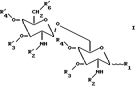 Заместитель R3 и R’3 могут быть короткой алкильной или ацильной группой, которая не влияет существенно на эндотоксичность и/или биологическую активность глюкозаминовых дисахаридов по изобретению. Примерами являются (C1-C3)алкильная группа и (C1-C3)ацильная группа. Предпочтительно, заместители R3 и R’3 оба являются водородами, что означает, что 3-положение и 3′-положение не ацилированы.
