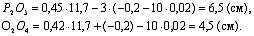 Рассчитывают длину отрезка Р2О3 по выражению Р2О3=0,45ШП-3(а-10k). Отрезок Р2О3 откладывают вверх по прямой Р2О2 от точки Р2. Влево по горизонтали от точки О2 откладывают отрезок О2О4:О2О4=0,42ШП+(a-10k). Точки О3 и О4 соединяют прямой. Находят середину данного отрезка – точку О5. Точки О5 и О соединяют прямой. Отмечают середину этого отрезка точкой О6. Соединяют прямой точки О6 и О4 и измеряют длину полученного отрезка – L.