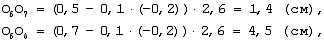 Соединяют прямой точки О4 и О3, находят середину этого отрезка – точку O5, О5 соединяют прямой линией с точкой О, находят точку О6 на середине отрезка, затем, соединив точки О6, О4, измеряют длину отрезка О6О4=2,6 (см). Рассчитывают положение вспомогательных точек О7 и О8 для оформления линии оката: