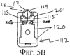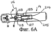 Из фиг.5А и 5В видно, что зажим 112 может дополнительно содержать два промежуточных канала 208, выполненных с возможностью легкого приспособления для помещения в них ножек 125, 127 оконечного элемента каждой половины узла 116, посредством чего ножки осуществляют перемещение скольжения в промежуточных каналах 208 при скольжении узла 116 в зажим 112 и из него.