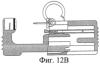Для того чтобы поместить шарнирную кольцевую серьгу, узел 116 может быть модифицирован посредством создания в нем сквозного отверстия, имеющего размер, подобранный так, чтобы удерживать пуссету шарнирной кольцевой серьги (не показано). В одном варианте выполнения, при использовании узла держателя штыря пуссеты с шарнирной кольцевой серьгой, он может не включать передний держатель головки пуссеты. В предпочтительном варианте выполнения, когда держатели головки пуссеты включены для использования с шарнирными кольцевыми серьгами, они имеют углубление для помещения шарнира шарнирной кольцевой серьги. Далее, верхняя поверхность зажима для серьги может быть снабжена такой радиальной полостью, что в нее может быть помещен узел держателя штыря пуссеты, несущий шарнирное кольцо. Для того чтобы шарнирная кольцевая серьга могла удерживаться в узле держателя штыря пуссеты, предусмотрено пространство, достаточное для того, чтобы кольцо могло отгибаться в сторону от пуссеты (фиг.12В) или, в альтернативной конструкции, к пуссете (фиг.12 А).