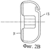 На фиг.10А и 10В показаны соответственно вид сверху и вертикальная проекция адаптирующейся верхней части 300. Конструкция упаковочной коробки позволяет вставлять гнездо заряжаемого картриджем серьги пистолета для пуссет в коробку 16 за фланцем 304. Это позволяет заряжаемому картриджем серьги пистолету для пуссет соединиться с картриджем 14 и извлечь его из коробки 16. Это обеспечивает средство, посредством которого стерильное состояние картриджа 14 и серьги для пирсинга ушей (N и Р) может поддерживаться после нарушения герметичности коробки 16. Кроме того, после осуществления процесса пирсинга ушей картридж 14 может быть вставлен обратно в коробку 16 путем установки последней поверх картриджа 14 и извлечения картриджа 14 из гнезда заряжаемого картриджем серьги пистолета для пуссет.