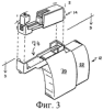 Внутренняя часть гнезда 74 имеет дополнительные средства, посредством которых картридж 14 удерживается и поддерживается в нужном положении. Так, рядом с передним упором 72 против друг друга поперек гнезда 74 расположены две боковые опоры 100 a, b гнезда, которые выступают вверх приблизительно на восьмую часть дюйма и обеспечивают дополнительное боковое закрепление и позиционирование картриджа 14. Внутренние стороны заднего упора 48 и переднего упора 72 могут иметь выемки или выступы, посредством которых зацепляются ребра 180, 181, имеющиеся на картридже 14. В одном варианте выполнения небольшой выступ или палец (не показан) может выступать вверх от поверхности 76 выступа 70 рядом с передним упором 72 для фрикционного взаимодействия с передним концом картриджа 14. Задний упор 48 и передний упор 72 могут иметь боковые бортовые выступы 82 для лучшего взаимодействия и закрепления картриджа 14 в гнезде 74.