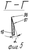 На фиг.5 – сечение Г-Г на фиг.4, поперечно-вертикальный разрез одностороннего лезвия ножа.