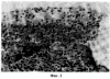 Через сутки после проведенного эксперимента визуально на раневой поверхности определялась прикрепленная пластинка. На границе прикрепленной к капсуле пластинки и неповрежденной капсулой определялись тромбы, умеренно выраженный отек. В гистологических препаратах вся поврежденная поверхность селезенки и прилежащая к поврежденной зоне часть селезенки заполнялись форменными элементами крови, особенно эритроцитами, лейкоцитами (фиг.2). Клетки крови заполняли узкую полоску между селезенкой и пластинкой (фиг.3). Раневая поверхность проходила через белую и красную пульпу селезенки, причем травмированными оказались трабекулы, а также различные кровеносные сосуды. Имеющиеся сосуды (артерии различного калибра, артериолы, капилляры, венозные синусы) находились в спавшемся состоянии, т.е. достигался гемостаз. В результате травмы селезенки отмечалось выделение медиаторов воспаления, что сопровождалось усиленной экссудацией жидкой части крови с последующим отеком тканей, миграцией лейкоцитов. При этом моноциты прикреплялись к эндотелиоцитам сосудов. После прикрепления и распластывания лейкоциты мигрировали через межклеточные промежутки в периваскулярную зону. В результате повреждения тканей и выделения медиаторов воспаления вырабатывались гемотаксические факторы, преимущественно белково-гликозаминогликановые комплексы, тогда как одним из компонентов этого комплекса является гиалуроновая кислота, прикрепленная к раневой поверхности селезенки, и способствует ускорению гемостатических процессов. Раневая поверхность имела неровную конфигурацию (фиг.4). У края поврежденной части одиночно или группами встречались лимфоциты и эритроциты, часть из них подвергалась деструктивным процессам.