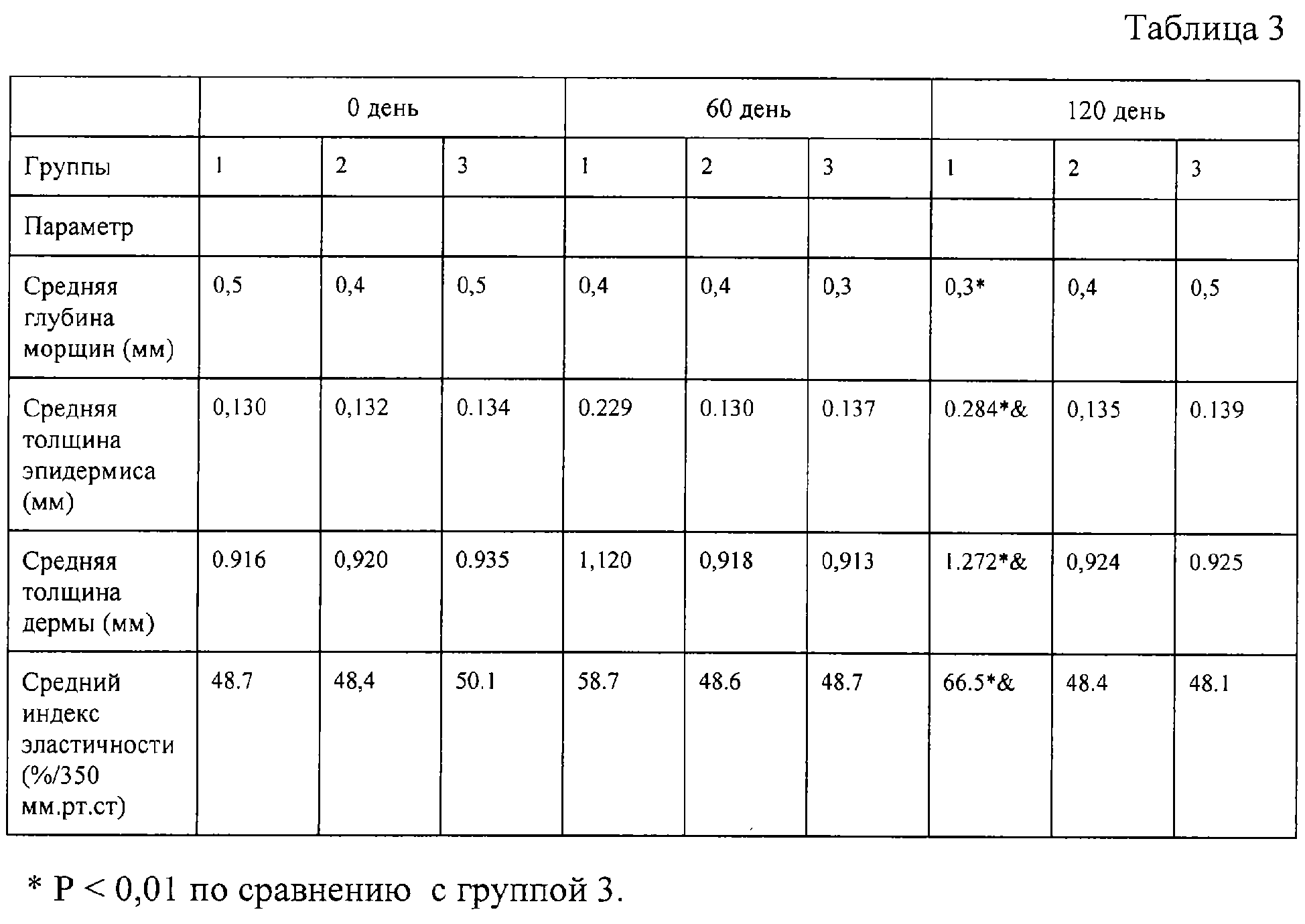 При анализе результатов видно, что заявляемый способ гораздо более эффективен, чем прототип, и сравним по результатам или превосходит воздействие известного антимикотического препарата. Аналогичные данные получены при сравнении заявленного способа и прототипа на данной модели в профилактическом режиме введения. Введение в профилактическом режиме проводили за 2 часа до инокуляции инфекционнного агента в кожу. Способ-прототип не оказывал профилактического действия, заявленный способ превосходил по профилактическому эффекту нанесение 1% крема тербинафина. Пример 3. При реализации способа человеческую рекомбинантную ДНКазу I (производства фирмы «Genentech», препарат «Пульмозим») вводили в MLV-липосомы размером 2000 нм и температурой фазового перехода 65°С. В исследование включили 30 женщин в возрасте от 41 до 55 лет. Перед началом исследования женщины были распределены по группам следующим образом. В группе 1 взвесь MLV-липосом в 4-6 мл буферного раствора наносили на кожу лица в объеме 4-6 мл из расчета 0,01 ед. Кунца на 1 см2 поверхности кожи в соответствии с заявляемым способом. В группе 2 ту же ДНКазу апплицировали в липосомах, описанных в прототипе. В группе 3 апплицировали взвесь MLV-липосом, полученных также, как и для группы 1, но не нагруженных ферментом («пустые» липосомы) и в таком же объеме буферного раствора. Все аппликации производились 2 раза в день. Перед началом исследования и после его окончания измерялись и оценивались: средняя глубина морщин (с помощью метода силиконовых реплик), эластический индекс (с помощью аппарата Dermaflex А фирмы «Cortex Ltd, Denmark»), толщина эпидермиса и дермы (с помощью аппарата Dermascan С фирмы «Cortex Ltd, фирмы Denmark»). Эффекты воздействия оценивали на 0 (перед началом воздействия), 60 и 120 день исследования. Результаты исследования приведены в таблице 3. & Р<0,01 по сравнению с группой 2. Из анализа результатов следует, что заявляемый способ эффективнее, чем способ-прототип, устраняет ассоциированные со старением изменения всех показателей косметического здоровья кожи. Применение заявленного способа в профилактическом режиме (курсами по 15 дней каждые 2 месяца в течение 2 лет) показало, что развитие изменений кожи, ассоциированных со старением, задерживается на срок 5-6 месяцев. То есть соответствующие изменения возникают у женщин, получающих воздействие в соответствии с заявленным способом, на 5-6 месяцев позже, чем у женщин, не применяющих заявленный способ. Пример 4. Использование заявленного способа локально в режиме мезотерапии – в средние слои дермы – для уменьшения проявлений «целлюлита» (дистрофического изменения подкожной клетчатки). Бычью панкреатическую ДНКазу (препарат «Дезоксирибонуклеаза» производства ООО «Самсон-мед», Санкт-Петербург) вводили в MLV-липосомы размером 1500 нм и температурой фазового перехода мембран 45°С. Исследование провели на 42 женщинах в возрасте от 45 до 65 лет. Женщин случайным образом распределяли в три группы по 9-12 человек. В каждой группе проводили воздействие на одинаковые участки кожи проблемных зон. Первой группе женщин взвесь MLV-липосом в соответствии с заявляемым способом вводили подкожно с помощью мезоинжектора PISTOR-4 на глубину 1-1,5 мм, инъекции производились на расстоянии 2-3 мм друг от друга. Введение проводили сеансами 1 раз в день в течение 15 дней с перерывами между курсами 10 дней. Воз