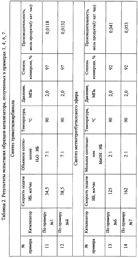Изобретение относится к способам приготовления катализаторов, в частности катализаторов на основе сульфированного сополимера стирола и дивинилбензола и термопластичного полимерного материала. Данные катализаторы широко используются в процессах получения алкил-трет-алкиловых эфиров, гидратации олефинов, дегидратации спиртов, получения сложных эфиров и др. Известен катализатор и способ его приготовления на основе ионообменных смол и термопластичных полимерных материалов путем их смешения, нагревания до температуры плавления термопласта и формования готового продукта методом экструзии (Авторское свидетельство СССР N 376984, кл. В 01 J 11/00, 1970). Катализатор, приготовленный указанным способом, обладает низкой активностью. Кроме того, при набухании в воде наблюдаются увеличение объема катализатора в два-три раза и уменьшение его механической прочности. Известен катализатор и способ его приготовления на основе ионообменных смол и термопластичных полимерных материалов с добавками органического вещества, способного совмещаться с термопластом и растворяться в органических растворителях (Авторское свидетельство СССР N 448664, кл. В 01 J 11/00, 1971). Недостатком данного способа является введение дополнительной стадии в процессе его приготовления – обработка органическим растворителем. Наиболее близким аналогом является ионитный катализатор на основе сульфированного сополимера стирола и дивинилбензола и способ его получения, включающий смешение сульфированного сополимера стирола и дивинилбензола с термопластичным полимерным материалом и водой, нагревание смеси до температуры плавления термопласта и формование смеси методом экструзии (Авторское свидетельство СССР N 677191, кл. В 01 J 37/00, В 01 J 31/08, 1972). На стадии формования температуру материального цилиндра устанавливают на 20-40°С ниже, чем температура формующей головки. Однако катализатор, полученный данным способом, обладает сравнительно низкой активностью в процессах гидратации изобутена (ИБ) до триметилкарбинола (ТМК), дегидратации ТМК до ИБ, а также в процессе синтеза метил-трет-бутилового эфира (МТБЭ). Так, вычисленные из примеров описания способа значения удельной производительности катализатора в процессе дегидратации ТМК (пример 5) не превышают 0,021 моль продукта/(г кат·час), в процессе гидратации ИБ (пример 7) 0,01 моль продукта/(г кат·час), в процессе синтеза МТБЭ (пример 8) 0,026 моль МТБЭ/(г кат·час). Целью настоящего изобретения является получение катализатора с повышенной активностью. Данная цель достигается использованием ионитного формованного катализатора, состоящего из сульфированного сополимера стирола и дивинилбензола и термопластичного материала – полимеров пропилена или сополимеров пропилена и этилена, в котором в качестве сульфированного сополимера стирола и дивинилбензола берут смесь порошкообразных сульфированных сополимеров стирола и дивинилбензола макропористой и гелевой структуры. При этом получение данного катализатора осуществляют смешением сульфированных сополимеров стирола и дивинилбензола и термопластичного материала с последующим формованием полученной смеси методом экструзии, которое ведут при температуре материального цилиндра экструдера 140-200°С и температуре формирующей головки, равной температуре в последней обогреваемой зоне ма