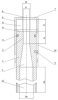 Поскольку диаметр d в рассматриваемом примере реализации изобретения составляет 5 мм, размеры корпуса распылителя равны соответственно: D=5,5 мм, S=10 мм.
