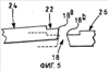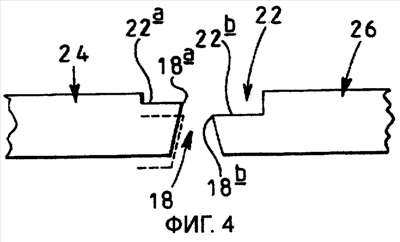 Передняя поверхность корпуса 16 матрицы имеет, в общем, плоскую форму и снабжена углублением 20, совмещенным с полостью 18, имеющим ту же самую общую форму, что и полость 18, но отличающимся большей шириной. В основании углубления 20 сформировано дополнительное углубление 22 (см. фигуру 4), имеющее также ту же самую общую форму, что и полость матрицы 18, но большей ширины. Как показано на фигуре 4, передние кромки 18а, 18b полости 18 матрицы образованы линией пересечении между полостью 18 матрицы и углублением 22.