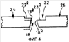Несмотря на то что в конструкциях, описанных выше, углубление 22 имеет плоскую донную поверхность, по желанию этой донной поверхности может быть придана наклонная форма. По желанию со стороны входа в полость матрицы для контроля за технологическим процессом может быть размещена камера предварительной формовки с меняющейся длиной рабочего пояска или формой, обеспечивающая по существу равномерность экструзии через матрицу. В другом варианте для достижения этого эффекта использована направляющая поверхность с переменной длиной рабочего пояска, выполненная за передними кромками 18а, 18b полости матрицы. Далее, несмотря на то что в предложенном выше тексте описания рассмотрены участки 24 в виде шипов, имеющие параллельные боковые стенки, следует принять во внимание, что это не является обязательным, и изобретение может быть использовано применительно к матрицам с участками в виде шипов, имеющими любую форму, например изогнутую или V-образную форму. Несколько участков в виде шипов, имеющих V-образную форму, представлены на фигуре 3 и обозначены номером позиции 28.