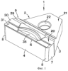 4. Режущая пластина по любому из пп.1-3, отличающаяся тем, что скошенная задняя часть (21) имеет длину, измеряемую как расстояние от поверхности заднего конца (5) до переходной от фронтальной части (20) поверхности (26), большую, чем длина фронтальной части, измеряемая как расстояние между указанной переходной поверхностью (26) и фронтальной поверхностью (4).
