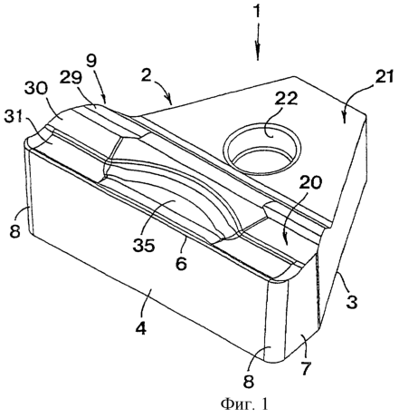 на фиг.6 – вид в перспективе альтернативного варианта режущей пластины в соответствии с изобретением.