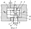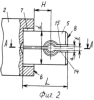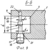 Работает устройство следующим образом. В начале модуль 2 своим хвостовиком 5 устанавливается в посадочное отверстие 3. Пазы 14 и 15 в хвостовике 5 позволяют ему беспрепятственно пройти через стержень 19 или плоский элемент 25 и направляющую 20, или резьбовой элемент 26. Между торцами 4 и 6 модулей 1 и 2 соответственно образуется зазор 1, т.к. наклонная поверхность 11 упирается в обратный конус 23, а между посадочной поверхностью 3 и хвостовиком 5 образуется минимальный зазор 2. При вращении винта 16 или гайки 27 конуса 17 и 18 начинают взаимодействовать с конусными поверхностями 12 и 13, а обратный конус 23 отходит от поверхности 11. В результате этого происходит сближение и соединение торцев 4 и 6 и после создания в них определенного натяга происходит создание натяга в сопряжении хвостовик 5 – поверхность 3, т.к. результирующая сила Р в результате давления конусов 17, 18 на соответствующие конусные поверхности 12 и 13 возрастает и разлагается на осевую Р0 и радиальную Pp. Осевая Р0 создает натяг в торцах 4 и 6, а радиальная РР – в сопряжении поверхность 3 – хвостовик 5. Благодаря выточке 7 и длинным пазам 14, 15 в хвостовике 5 возникают деформации по всей его длине, которые позволяют выбрать все зазоры (в том числе от незначительного провала диаметра при изготовлении или износе) и создать требуемый натяг по всему сопряжению поверхность 3 – хвостовик 5 от плоскости I до плоскости II, а также в торцах 4 и 6 плоскости III (фиг.7).