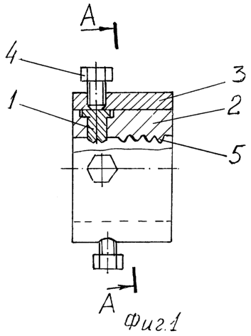 Предлагаемая плашка поясняется чертежами: фиг.1 – общий вид плашки с разрезом, фиг.2 – разрез А-А на фиг.1.