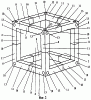 1. Многоместное приспособление-спутник, содержащее многогранную раму призматической формы с ребрами, окнами и внутренней полостью, сменные плиты с обрабатываемыми деталями на боковых гранях рамы, отличающееся тем, что рама, являющаяся сборной, состоит из трехпалых крестовин, каждая из которых выполнена с расходящимися от вершин выступами призматического сечения со сквозными ступенчатыми отверстиями и опорными торцами, при этом крестовины между собой соединены парами противоположно направленных выступов, устройствами базирования и крепления в них так, что каждая крестовина своими выступами соединена с выступами различных крестовин, у которых оси отверстий выступов соосно совмещены, и внутри отверстий в месте расположения опорных торцов выступов установлены устройства базирования и крепления крестовин между собой.