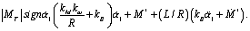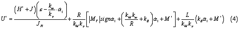 С учетом соотношений (1) и (2), а также уравнений электрической и механической цепей электродвигателя постоянного тока с постоянными магнитами или независимого возбуждения рассматриваемый привод поворота можно описать следующим дифференциальным уравнением: