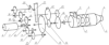 Движение шнеку 2 передается приводом через вал, который вращается (например, со скоростью 2-3 об/мин) и совершает дополнительные крутильные колебания (например, с частотой n 500 колеб/мин 8,33 Гц и амплитудой 0,05 рад.). В результате нагнетательный шнек 2 совершает сложное вращательно-колебательное движение. Такое сложное движение сообщает валу привод с разветвленной кинематической цепью. Двигатель 6 через регулятор частоты 7 (вариатор) с помощью зубчатых колес 8, 9, 10, 11, 12, 13 приводит в равномерное вращение зубчатое колесо 14, а через зубчатые колеса 8, 15, 16, 17, 18 и 19 приводит в движение шатунно-кривошипный механизм 20, который превращает вращательное движение в колебательное движение подводки 21, на котором в подшипнике консольно укреплен вал колес 22 и 23. Качание подводки 21 вызывают дополнительные колебательные повороты колес 22 и 23 по часовой и против часовой стрелки, так как зубчатое колесо 22 обкатывает колесо 14. Эти дополнительные движения колес 22 и 23 складываются в равномерное вращательное движение колеса 14 и передаются на колесо 24, закрепленное на выходном валу 25 привода.
