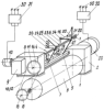 Непрерывное вращение вала 22 дифференциального редуктора 8 приводит к тому, что его рычаг 21 через тягу 20 увлекает двуплечий рычаг 18. Двуплечий рычаг 18 механизма 6 через шарнир 34 воздействует на рычаг 33. Рычаги 33, 25, 26 и пакет упругих элементов 24 вращают полый вал 23 с штангами 27 и ножедержателем 28. Это вращение происходит до момента соприкосновения ролика 19 на упоре 17. Далее взаимные положения рычагов 21 и 25 на вращающемся валу 22 и рычагов 33 и 26 на полом валу 23 приводят к повторному циклу.