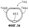 На Фиг.34 изображен вид снизу еще на один предпочтительный вариант части кольца 746 согласно настоящему изобретению. Кольцо 746 очень сходно с кольцом 346, за исключением того, что стержень 553 использован вместо стержня 53. Кольцо 746 содержит сегменты 746А-746В кольца, а часть стержня 553 пересекается сегментами 746А-746В кольца. Сегменты 746А и 746В кольца близко связаны по форме и функциям с сегментами 346А и 346В кольца на Фиг.30А-30F. Кольца 746 включены в скоросшиватели 23-25, показанные на Фиг.23А-25В, где каркас прикреплен к обложке застежками или заклепками.