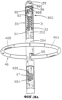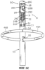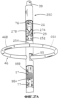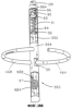 Чтобы закрыть каркас 350, кнопка нажима 139 надавливается в направлении стержня 352 против действия пружины 31. Это воздействие заставляет кулачок 95 выйти из паза 96В и проскользить через зуб 96С планки 96, где кулачок 95 затем вдавливается в паз 96А пружиной 31, позволяя действовать торсионной пружине 97, чтобы закрыть кольца 46 каркаса 350. Торсионная пружина 97 скручивает зацеп 98А относительно зацепа 98В, вызывая поворот стержня 352 относительно трубки 354 до тех пор, пока сегменты колец 46А не сойдутся с сегментами колец 46В. Хотя на Фиг.2ВА и 28В показано положение некоторых компонентов синхронного разъединяющего элемента 351 на одном конце каркаса 350, соответствующие зеркальные компоненты синхронного разъединяющего элемента 351 могут быть расположены на другом конце каркаса 350 для обеспечения более стабильной работы.