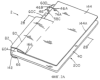 Передняя обложка 1144 состоит из частей 1144А-1144В передней обложки и задней обложки 1640, содержащей части 1640А-1640В задней обложки. Часть 1144В передней обложки имеет уменьшенную толщину, что позволяет части 1144А передней обложки складываться вниз под среднюю обложку 1842 и заднюю обложку 1640, как показано на Фиг.23В. Аналогично, часть 1640В задней обложки имеет уменьшенную толщину, что позволяет части 1640А задней обложки складываться под среднюю обложку 1842 и переднюю обложку 1144.