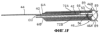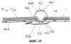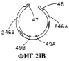 На Фиг.26С показано, как ствольный конец жгутика 34 крепится к защелке 38, которая имеет головку 38А. Защелка 38 также прикреплена к пружине 36. Пружина 36 распрямляется в фиксированное положение через щель 37, когда каркас 150 зафиксирован в открытом положении, как показано на Фиг.26А и прерывистыми линиями на Фиг.26С. На Фиг.26А-26С кольца 146 показаны округлыми. Однако возможны другие формы колец при условии, что части сегментов 146В и 146С колец имеют одинаковую кривизну, обеспечивающую размещение сегмента 146С кольца в сегмент 146В кольца.
