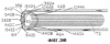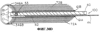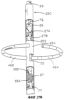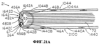 На Фиг.27А и 27В показаны эскизы следующего предпочтительного варианта каркаса 250 скоросшивателя согласно настоящему изобретению, с детальным изображением частей сечения, показывающих синхронный разъединяющий элемент 251 каркаса 250. Сегменты 46А колец прикреплены к стержню 252 сваркой, спаиванием или другими подходящими методами. Аналогично, сегменты 46В колец прикреплены к трубке 254. Когда стержень 252 собран внутри трубки 254, расставленные на определенном расстоянии сегменты 46А колец проходят через проделанные на таком же расстоянии прорези 55 трубки 254. Трубка 254 вращается вокруг стержня 252 на ограниченный угол, чтобы закрыть или открыть сегменты 46А колец относительно сегментов 46В колец. Цилиндрические фланцы 77 поддерживают продольные оси стержня 252 совпадающими с продольными осями трубки 254.