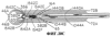 На Фиг.35 изображен вид снизу еще на один предпочтительный вариант части кольца 846 согласно настоящему изобретению. Кольцо 846 очень сходно с кольцом 546, за исключением того, что стержень 553 использован вместо стержня 53. Кольцо 846 содержит сегменты 846А-846В кольца, а часть стержня 553 пересекается сегментами 846А-846В кольца. Сегменты 846А и 846В кольца близко связаны по форме и функциям с сегментами 546А и 546В кольца на Фиг.32А-32F. Кольца 846 могут быть включены в скоросшиватель 25, показанный на Фиг.25А-25В, где каркас прикреплен к задней обложке 1740D заклепками.