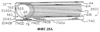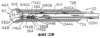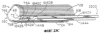 В закрытом положении, показанном на Фиг.26В, сегменты 146С колец сжаты с сегментами 146А колец. Сегменты 146С колец способны, хотя и ограниченно, входить в сегменты 146В колец, которые имеют ту же кривизну, что и сегменты 146С колец. Один конец сегмента 146С кольца имеет ушко – отверстие 30. Жгутик 34 состоит из участка ствола 34А с тремя ответвляющимися участками 34В, каждый из которых оканчивается петлей 35. Трубка 33, пружина 131 и упор 132 сегмента 146В каждого из трех колец каркаса 150 нанизаны на один из ответвленных участков 34В жгутика 34. Каждый из сегментов 146С колец прикреплен к жгутику 34 петлей 35 через ушко 30.