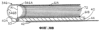 Фиг.26А-26С показывают изометрию, вид снизу и сверху, соответственно, еще одного предпочтительного варианта каркаса 150 скоросшивателя согласно настоящему изобретению с детальным изображением в нем частей сечения синхронного разъединяющего элемента 151. В этом варианте каркаса 150 жгутик 34 и трубка 154 служат первым и вторым соединительными элементами, соответственно, синхронного разъединяющего элемента 151. Кольца 146 имеют сегменты 146А-146С. Сегменты 146А колец и сегменты 146В колец прикреплены к трубке 154 с помощью сварки, припоя или другими подходящими методами. Сегменты 146В колец полые, а их трубки 33 сужены с одного конца выступами или упорами 132. Трубка 33 заключает в себе пружину 131 и вмещает часть сегментов 146С колец. Упор 132 поддерживает один конец пружины 131, которая постоянно давит на сегменты 146С колец, когда каркас 150 открыт или закрыт.