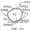Кольцо 646 состоит из сегментов 646А-646В кольца, а часть стержня 53 пересекается сегментами 646А-646В кольца. Сегмент 646А кольца имеет сегменты 646P-646Q кольца, а сегмент 646В кольца имеет сегменты 646R-646S кольца. В основном круглые сегменты 646Р и 646R кольца соединены с прямыми сегментами 646Q и 646S кольца, соответственно. Прямые сегменты 646Q и 646S кольца параллельны линиям Х2 и Y2, соответственно, и составляют сегмент периметра с ломаной линией.