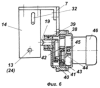 Электромеханический привод кулисного типа 37 механизма поворота 14 может быть выполнен различным образом, например в виде механизма по а.с. 1293933. Кулиса 38 механизма установлена в подшипниках 39 в корпусе 40, жестко закрепленном на раме. В корпусе 40 жестко установлено коронное колесо 41, в зацепление с которым входит сателлит 42, содержащий эксцентрично расположенный ползун 43, сопрягающийся с кулисой 38. Сателлит 42 шарнирно связан с водилом 44, установленным на выходном валу 45 электродвигателя 46 вращения. Ось кулисы 38 жестко связана с входным валом 19 механизма поворота 14.